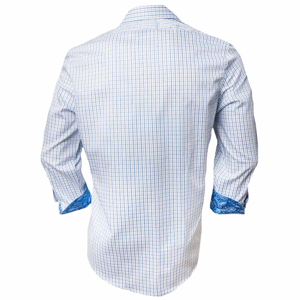 - Main Dress Shirt Fabric: 100% White with blue Italian plaid cotton