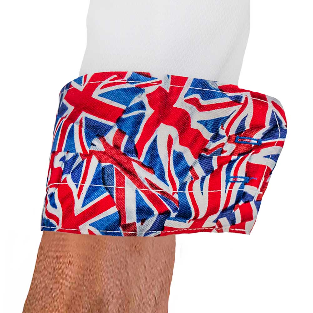 - Accent Fabric: British flag accent fabric handcrafted in the inner collar band, down the button side placket, and inside the cuffs.