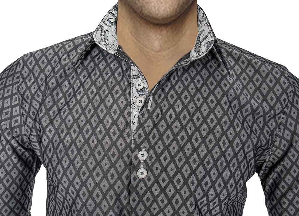 - Main Dress Shirt Fabric: 100% Grey Italian diamond cotton
