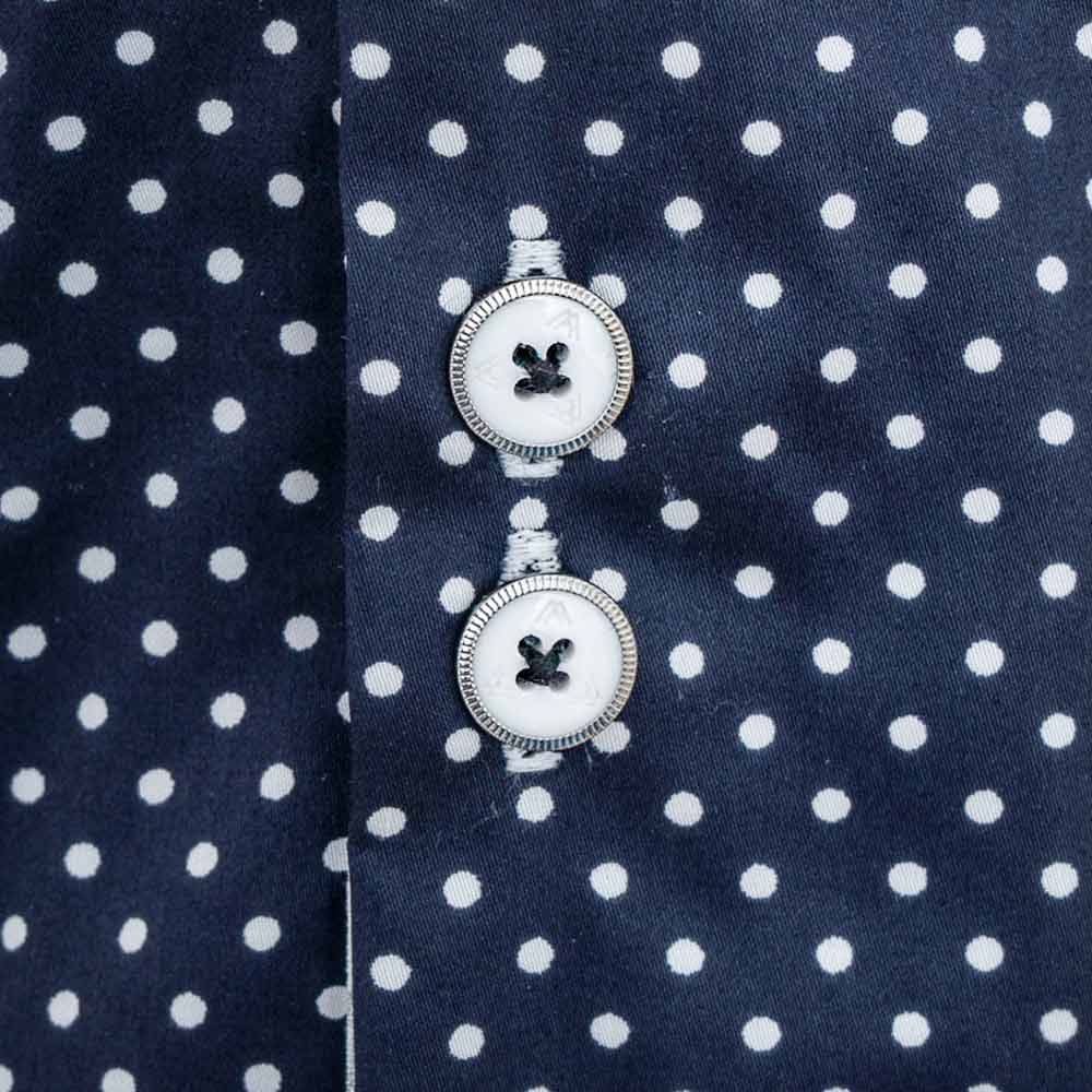 All of our Modern Polka Dot Shirts are hand cut manually to ensure perfect symmetry of the fabric for accurate sizing. All of our fine fabrics are imported from Italy, England, Turkey, and Japan. Every single dress shirt is proudly made in the USA.