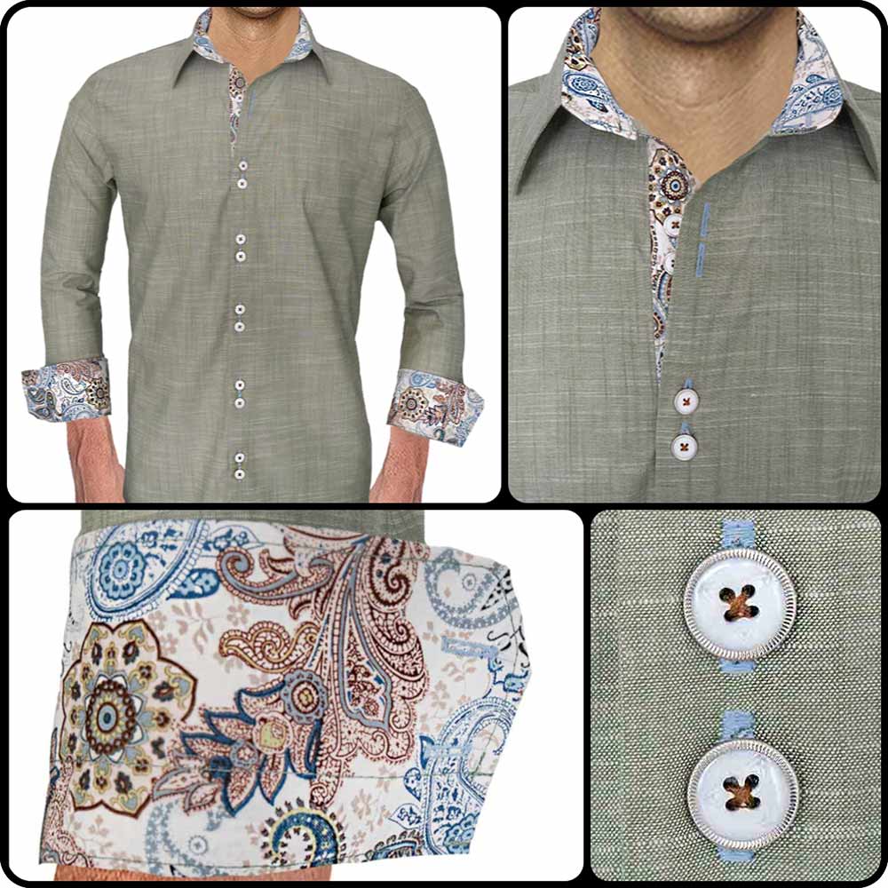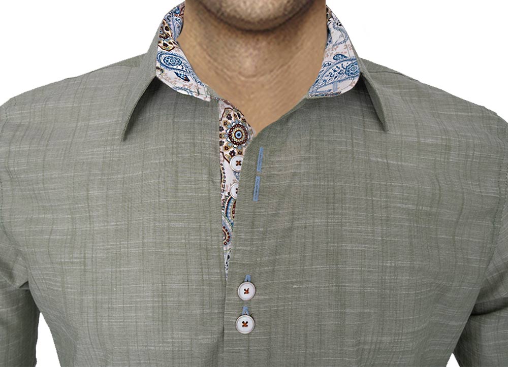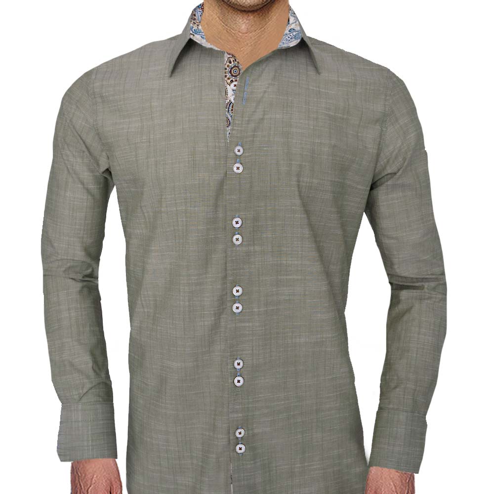 - Main Dress Shirt Fabric: 100% Olive Italian cotton