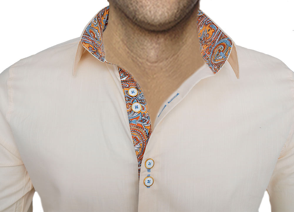- Main Dress Shirt Fabric: 100% Tan Italian cotton