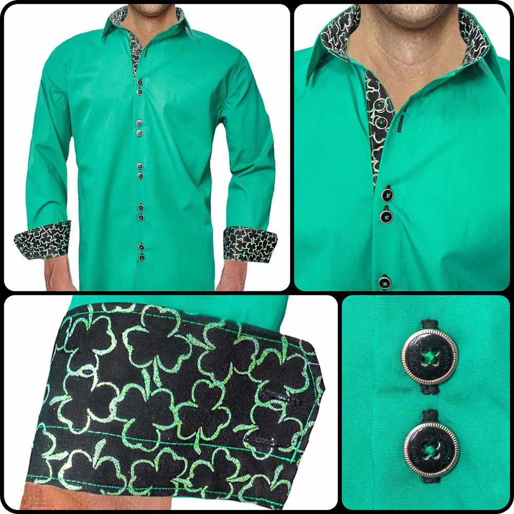 All of our Green St Patricks Day Casual Shirts are hand cut manually to ensure perfect symmetry of the fabric for accurate sizing. All of our fine fabrics are imported from Italy, England, Turkey, and Japan. Every single dress shirt is proudly made in the USA.