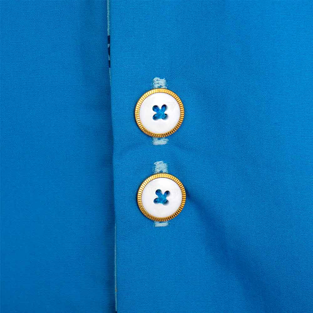 Each button down shirt has a brushed nickel double button design with purl stitched buttonholes. Purl Stitch buttonholes use 2x more thread then the industry standard ones. Every one of our dress shirts are custom tailored with these meticulous details.